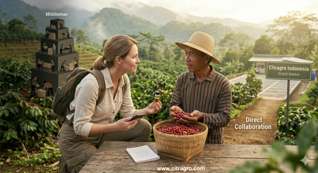 Menghadapi tantangan struktural yang telah mengakar ini, kami percaya bahwa sekadar menjadi “pembeli” atau “eksportir” konvensional tidaklah cukup. Hal itu hanya akan melanggengkan siklus masalah yang sama. Kami mengambil posisi tegas: rantai pasok harus dipangkas secara radikal, dan hubungan dengan petani harus didefinisikan ulang menjadi kemitraan strategis.